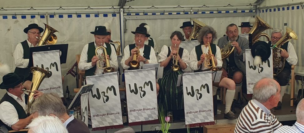 Die Weßlinger Blasmusik war in gut gelaunter Besetzung erschienen und eröffnete um 11 Uhr den zweiten Festtag mit ihrer Musik, die ideal zu diesem sonnigen Morgen passte. Das Gelände füllte sich schnell mit Besuchern, und an Zapfhahn und Weißwurstausgabe gab
